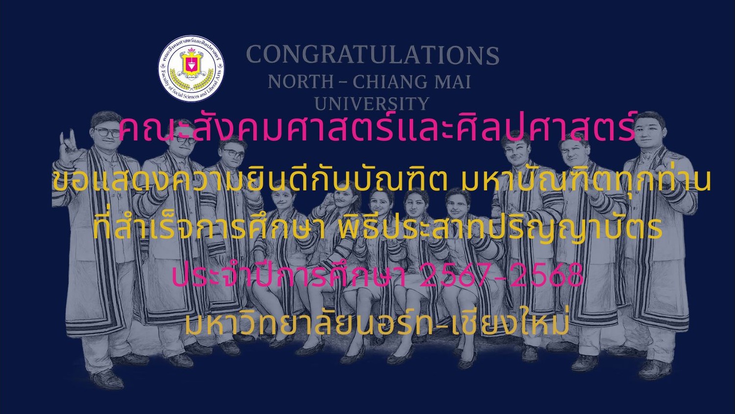 คณะสังคมศาสตร์และศิลปศาสตร์จัดกิจกรรมปฐมนิเทศนักศึกษาต่างประเทศ รุ่นที่ 5 หลักสูตรประกาศนียบัตรการเตรียมความพร้อมด้านภาษาและวัฒนธรรมไทยสำหรับชาวต่างประเทศ : แผนการเรียนภาษาไทยเบื้องต้น (The Certificate of Languages and Thai Culture Preparation for Foreigners : Thai for Communication Program, North-Chiang Mai University) โดยได้รับเกียรติจาก รองศาสตราจารย์ ดร.พิธากรณ์ ธนิตเบญจสิทธิ์ รองอธิการบดี และรักษาการคณบดีคณะสังคมศาสตร์และศิลปศาสตร์ เป็นประธานกล่าวให้การต้อนรับ ณ ห้องประชุมรัฐมนตรี มหาวิทยาลัยนอร์ทเชียงใหม่