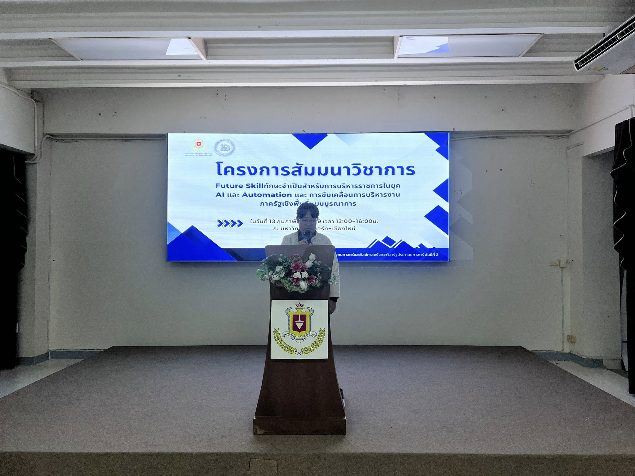 หัวข้อ "การพัฒนาทุนมนุษย์ในภาครัฐไทย กับการบริหารจักการในระดับชาติ ภูมิภาค และระดับท้องถิ่น" และประเด็น "การถอดบทเรียนอุทกภัยในเขตพื้นที่เทศบาลนครเชียงใหม่ ปี พศ. 2567"