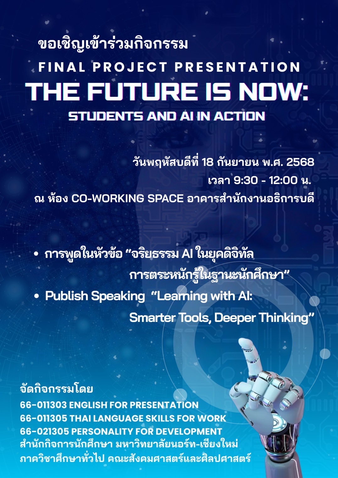 >>> วันเสาร์ที่ 14 มิถุนายน 2568 ณ ห้อง 010304 อาคารสำนักงานอธิการบดี มหาวิทยาลัยนอร์ท-เชียงใหม่