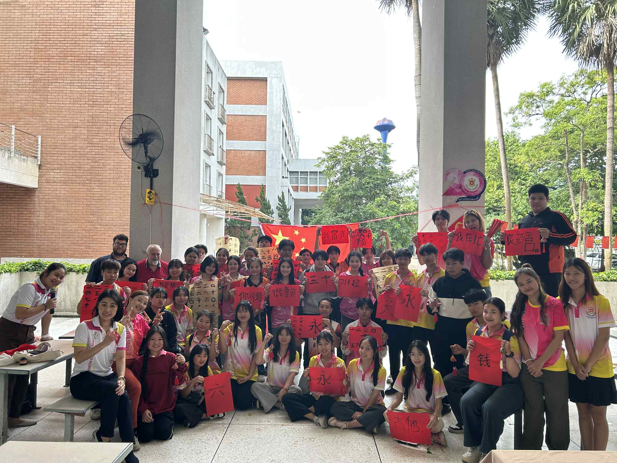 ผู้บริหาร และคณาจารย์คณะสังคมศาสตร์และศิลปศาสตร์ ร่วมแสดงความขอบคุณครูอาสาสมัครชาวจีนครูอาสาสมัครชาวจีน Miss Zong Hui Fang และ Miss Yang Shi Min ครูอาสาสมัครชาวจีนจากสำนักส่งเสริมการเรียนการสอนภาษาจีนนานาชาติ (Hanban) โครงการประสานงานของสำนักงานคณะกรรมการการอุดมศึกษา เนื่องในโอกาสจะกลับสู่มาตุภูมิสาธารณรัฐประชาชนจีน
