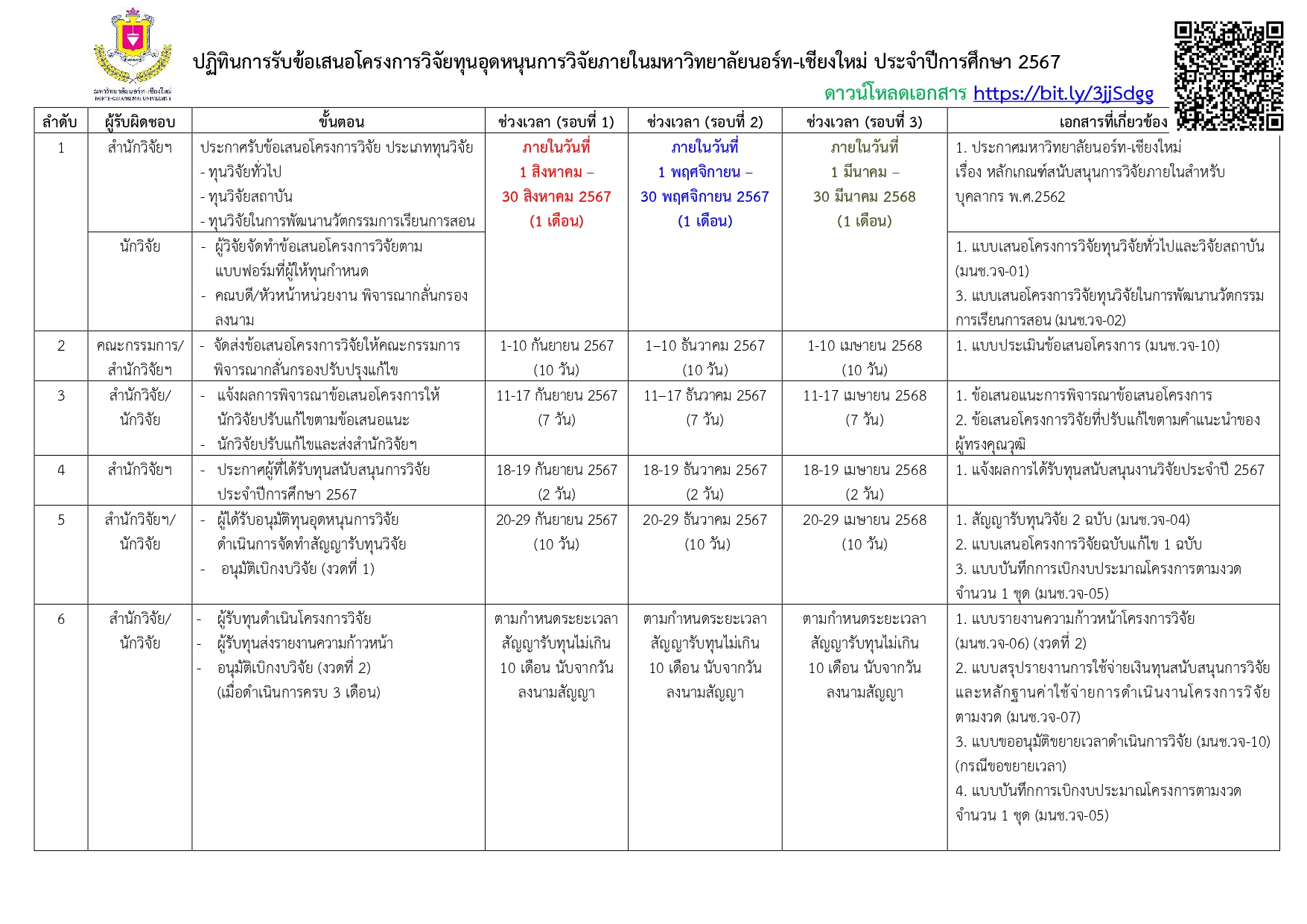 สำนักวิจัยและบริการวิชาการ ได้จัดทำปฏิทินการรับข้อเสนอโครงการวิจัยเพื่อขอรับทุนอุดหนุนการวิจัยภายในมหาวิทยาลัยนอร์ท-เชียงใหม่ ประจำปีการศึกษา 2567 สำหรับอาจารย์และบุคลากร สามารถจัดทำข้อเสนอโครงการวิจัยและจัดส่งข้อเสนอโครงการวิจัยเพื่อขอรับทุนวิจัย จึงขอประชาสัมพันธ์ให้อาจารย์และบุคลากร ผู้สนใจสามารถโหลดแบบฟอร์มและเอกสารเพิ่มเติมได้ที่ https://bit.ly/3jjSdgg